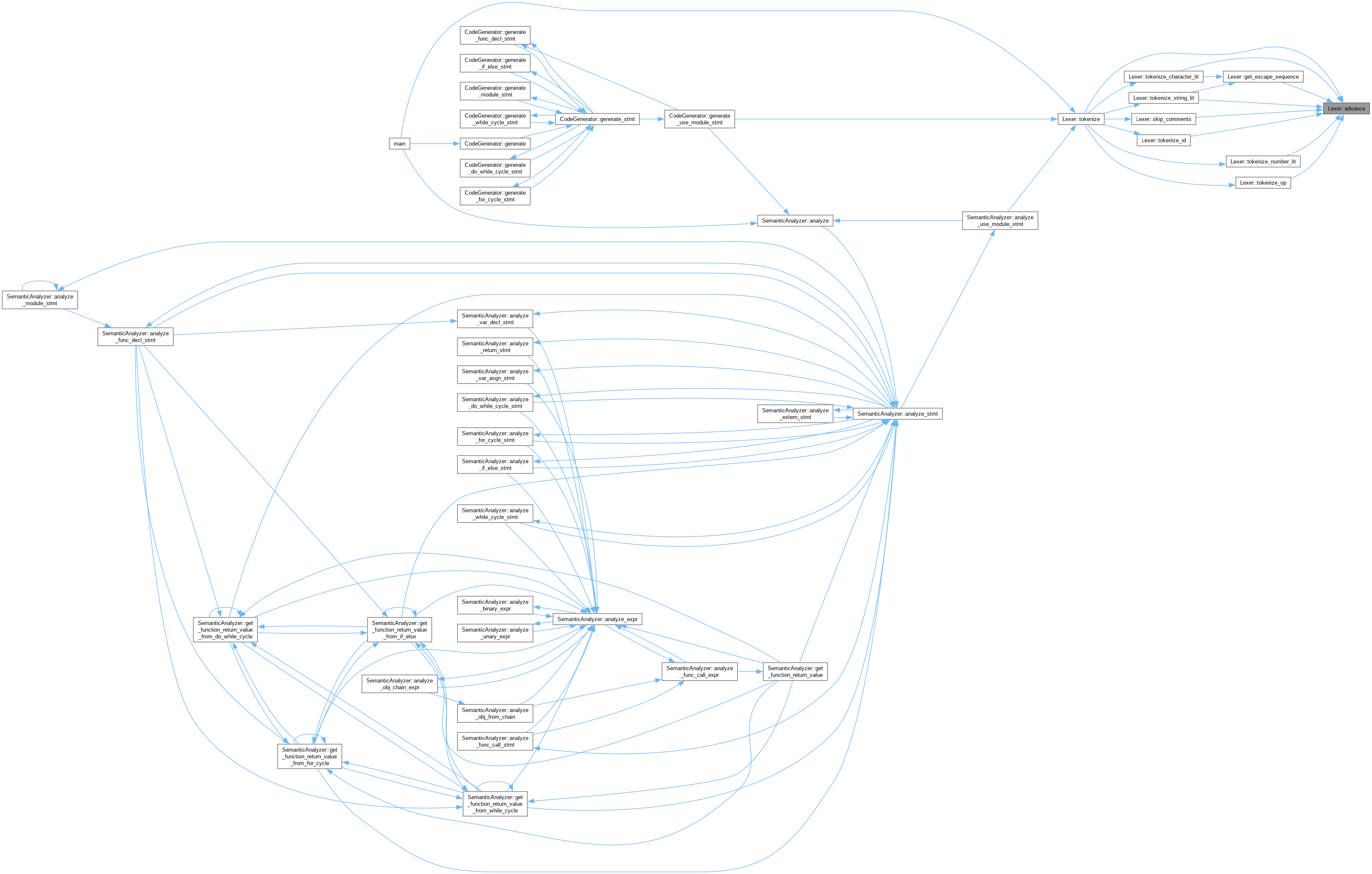 This method caching current character from source code, skip it, changing lexer's pos, line and column and return cached character