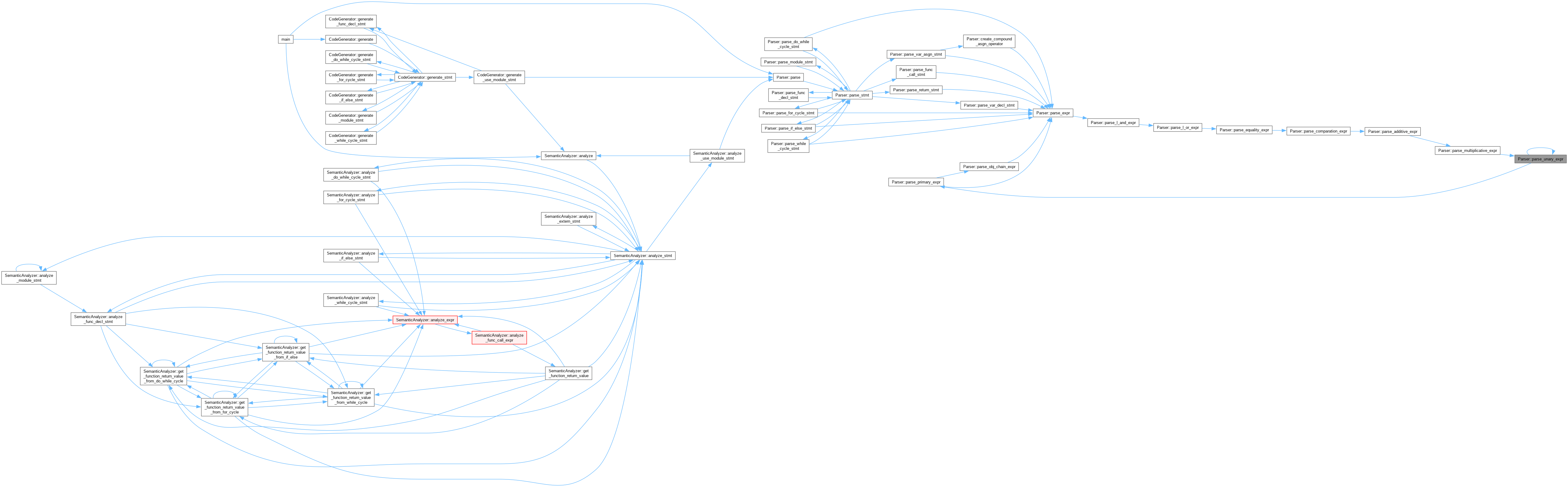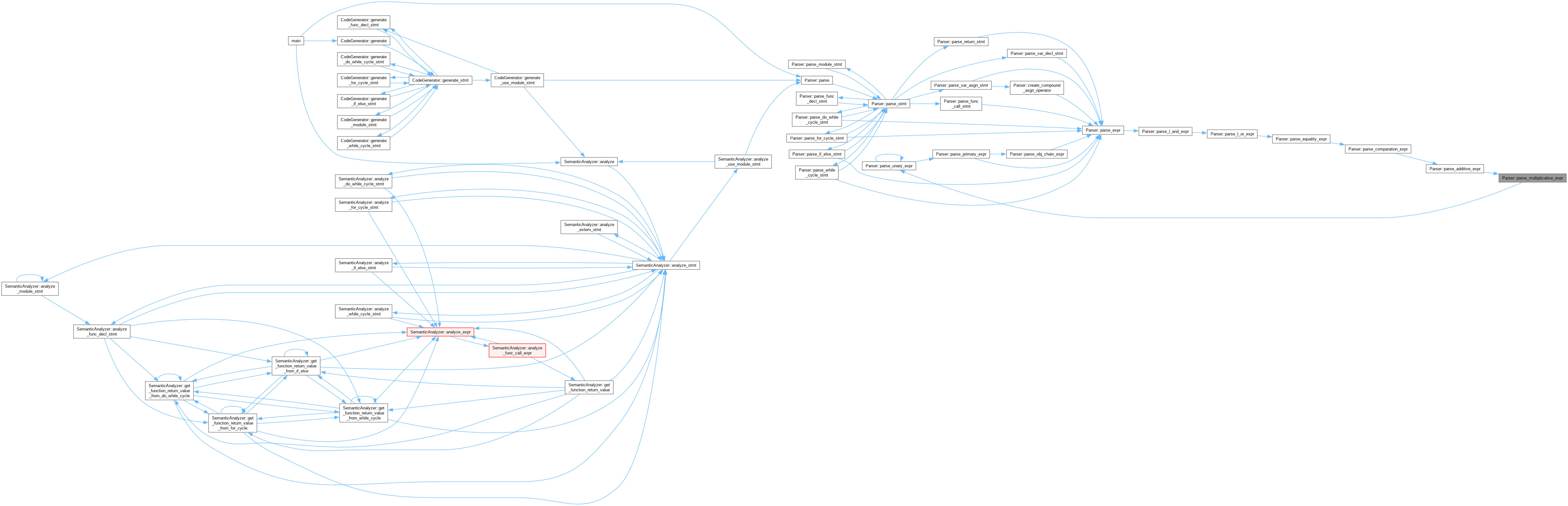 This method parsing all expressions as 'multiplicative'. If type of current token isnt TOK_OP_MULT (aka *) or TOK_OP_DIV (aka /) or TOK_OP_MODULO (aka %), then returns created expression