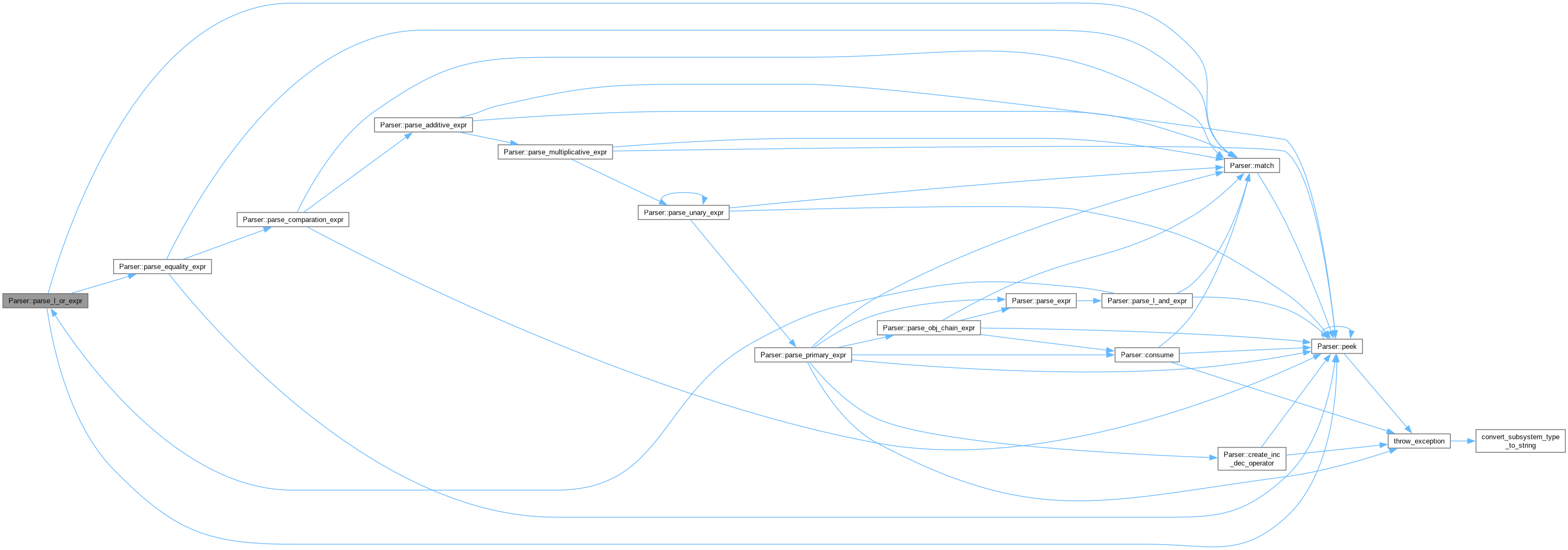 This method parsing all expressions as 'logical or'. If type of current token isnt TOK_OP_L_OR (aka ||), then returns created expression