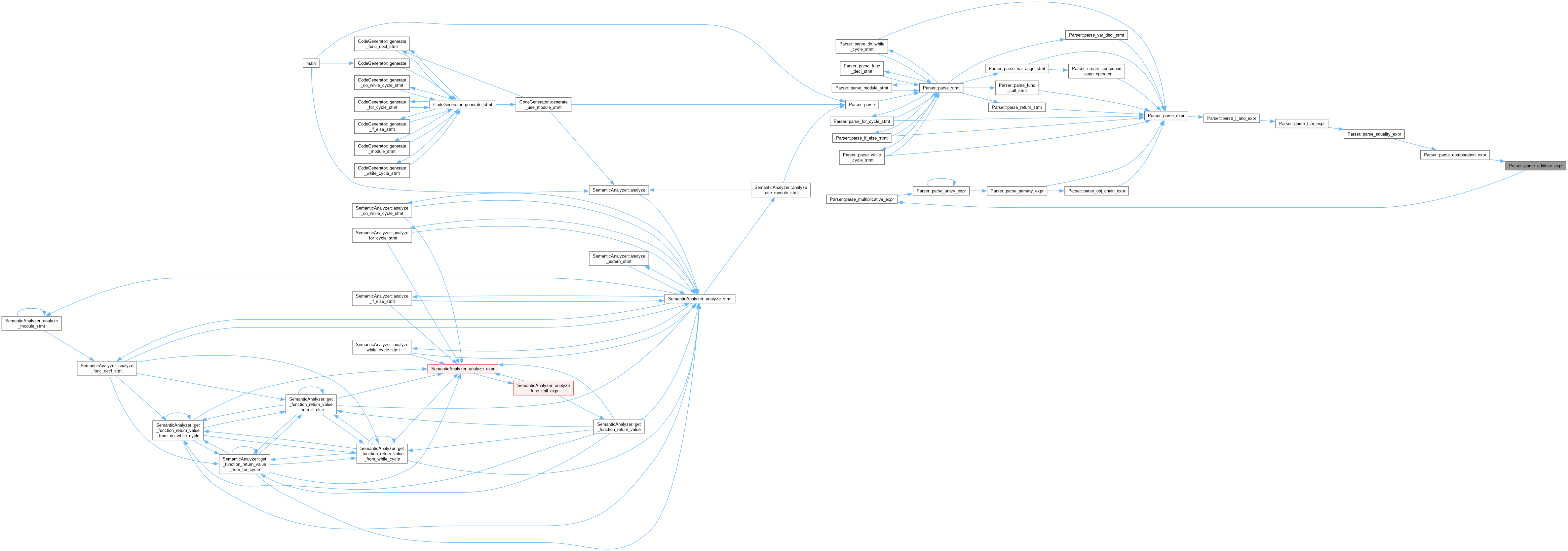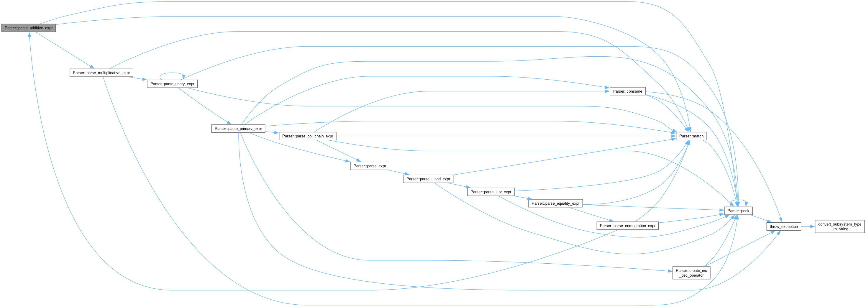 This method parsing all expressions as 'additive'. If type of current token isnt TOK_OP_PLUS (aka +) or TOK_OP_MINUS (aka -), then returns created expression
