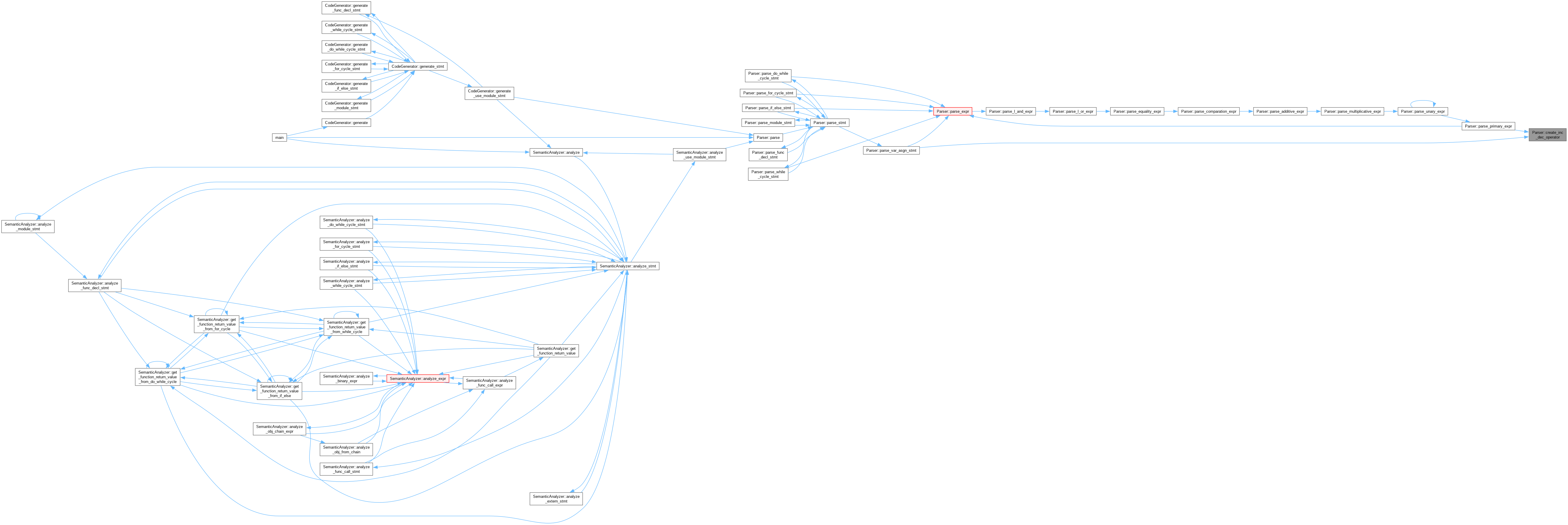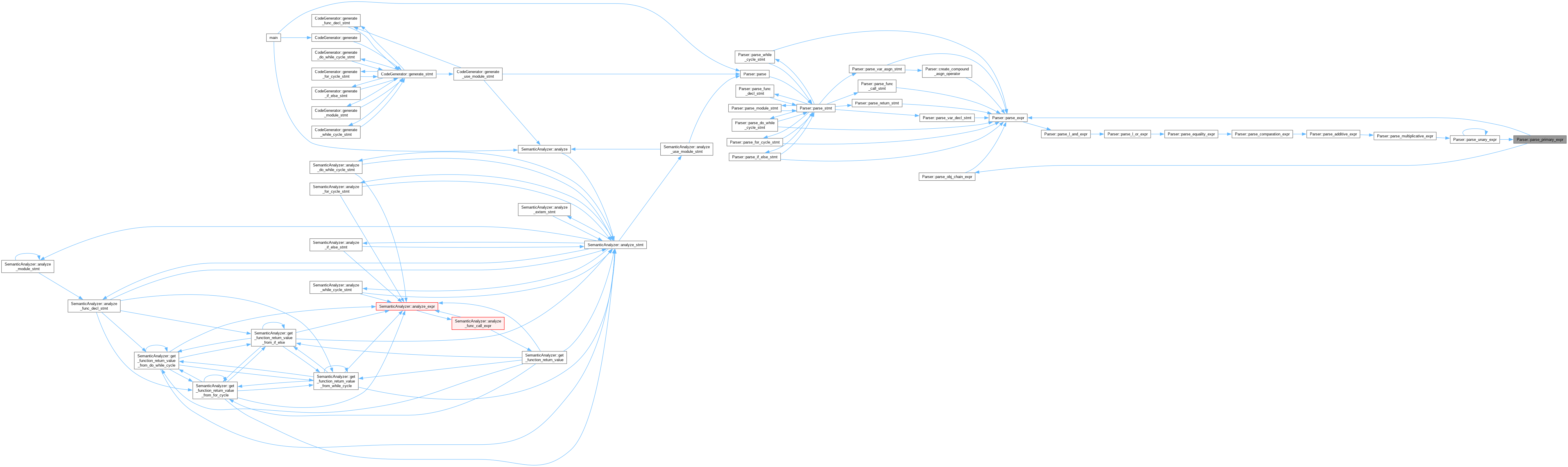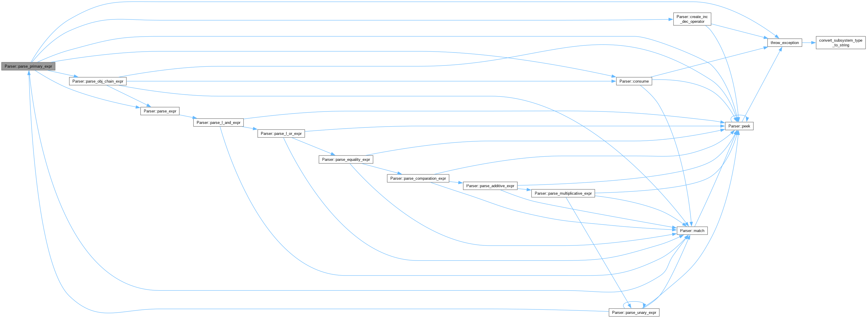 This method parsing all expressions as 'primary'. If type of current token isnt literal or identifier, then throwing exception