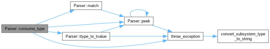 This method checks whether the type of the current token is equal to the passed type. If equal, it skips and returns it, otherwise it throws an exception with the passed message