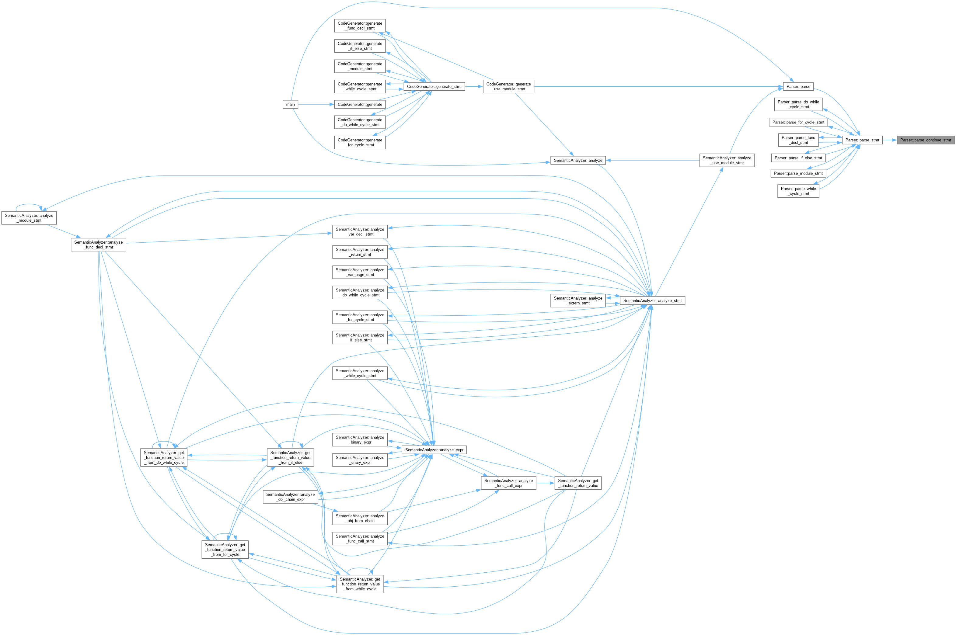This method sets the syntax for continue statement, creates the AST element of the ContinueStmt and returns it