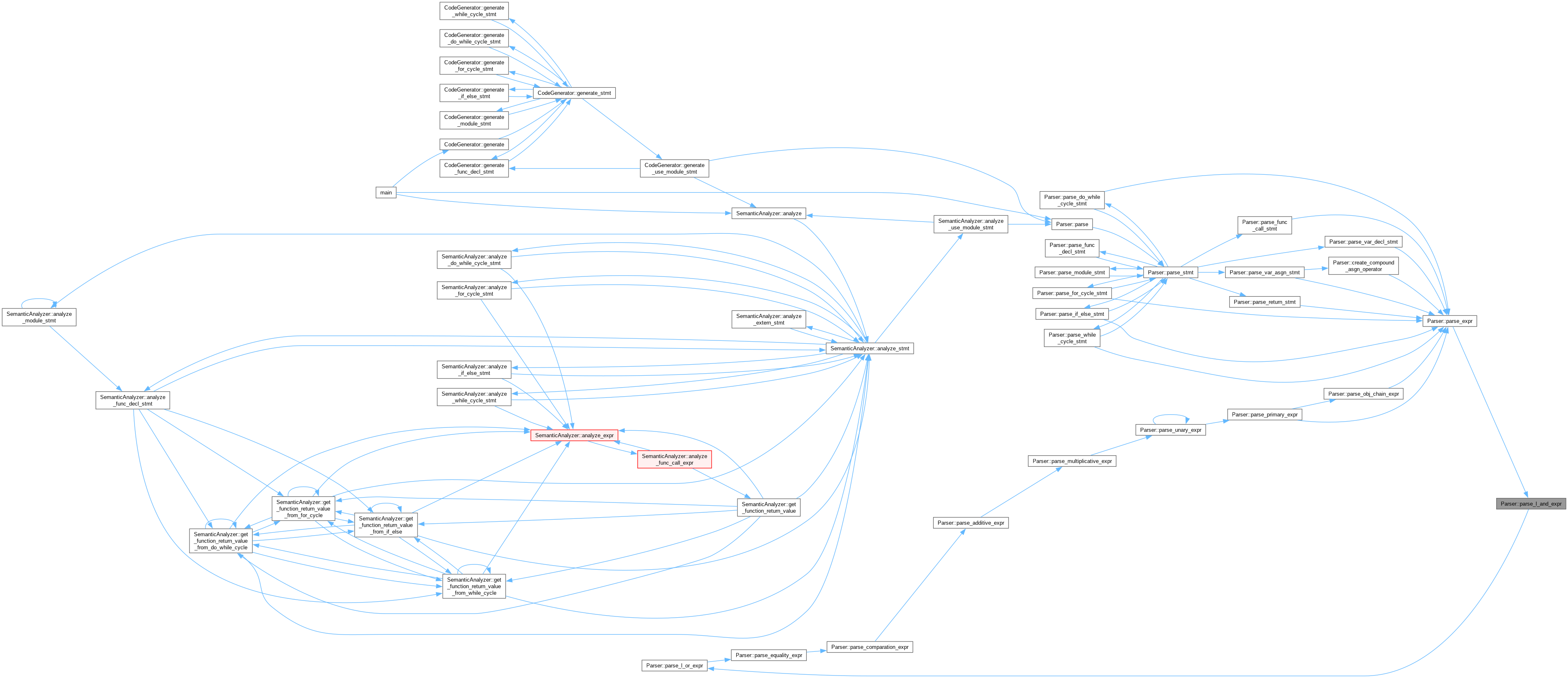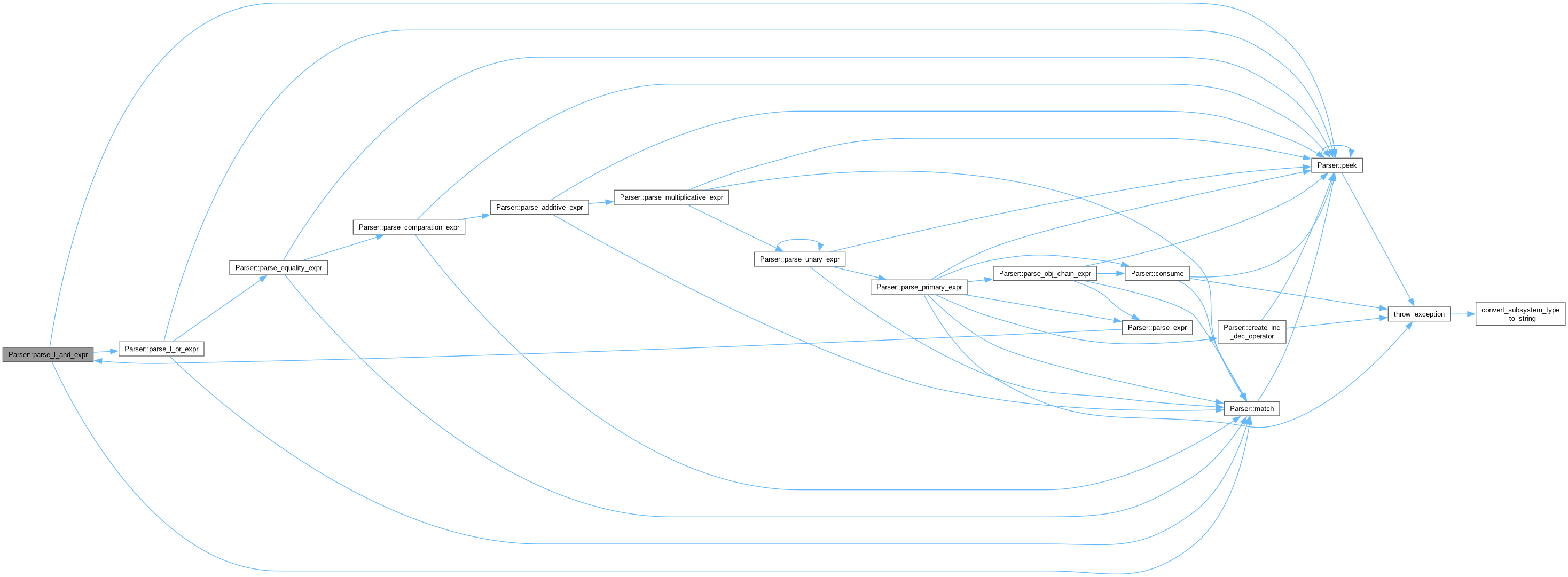 This method parsing all expressions as 'logical and'. If type of current token isnt TOK_OP_L_AND (aka &&), then returns created expression